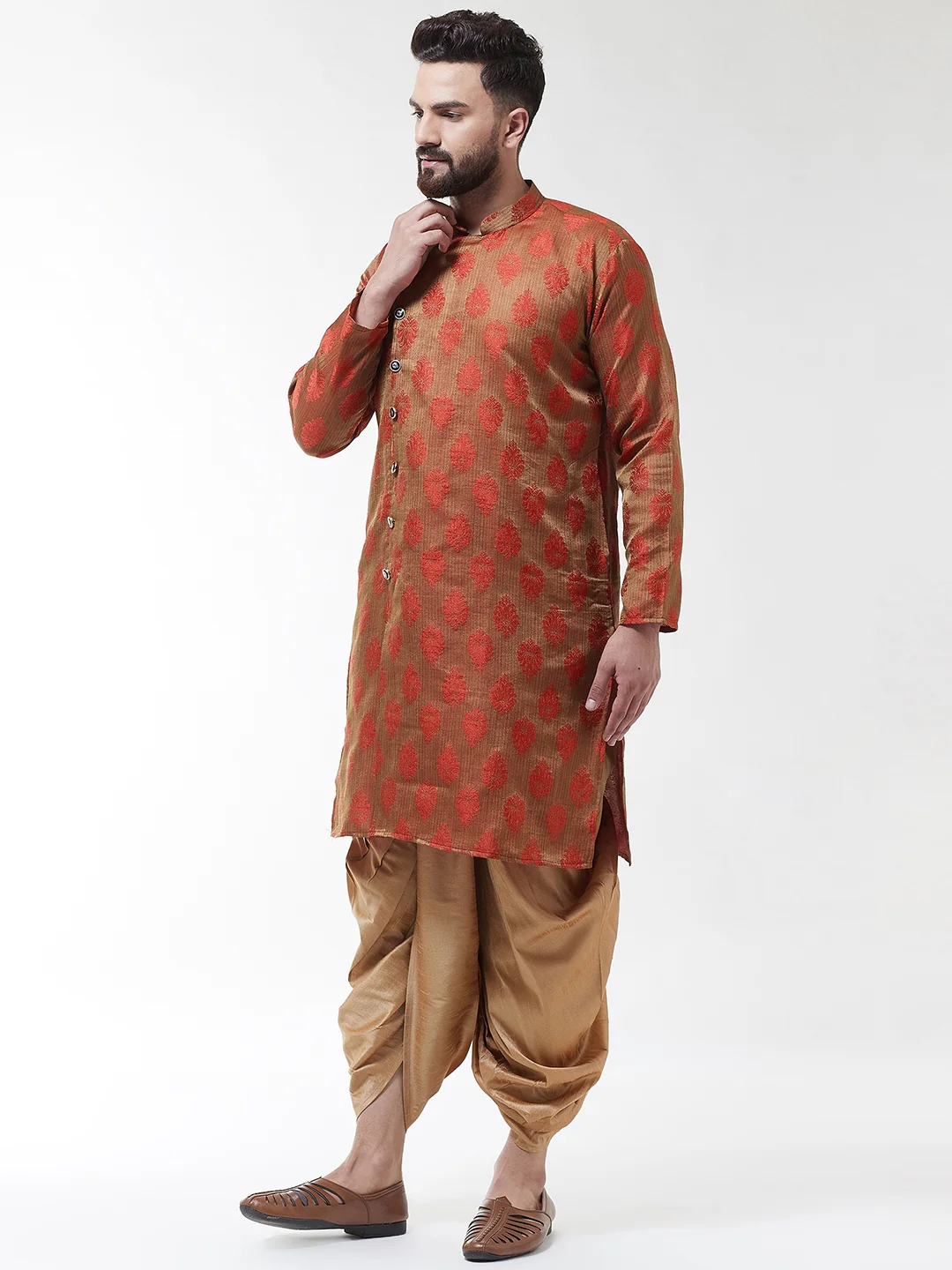 Men Red Gold-Coloured Self Design Kurta with Dhoti set (Copy)